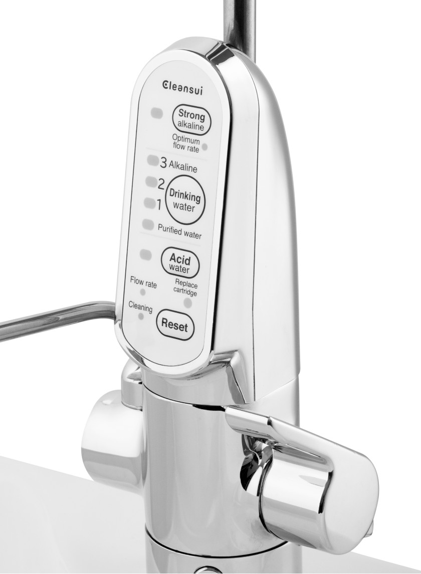 Ví dụ, thiết bị lọc nước tạo ion kiềm EU301 của Mitsubishi Cleansui được trang bị 6 chế độ nước pH đa dạng, bao gồm 4 chế độ nước kiềm, 1 chế độ nước lọc trung tính và 1 chế độ nước ion acid.