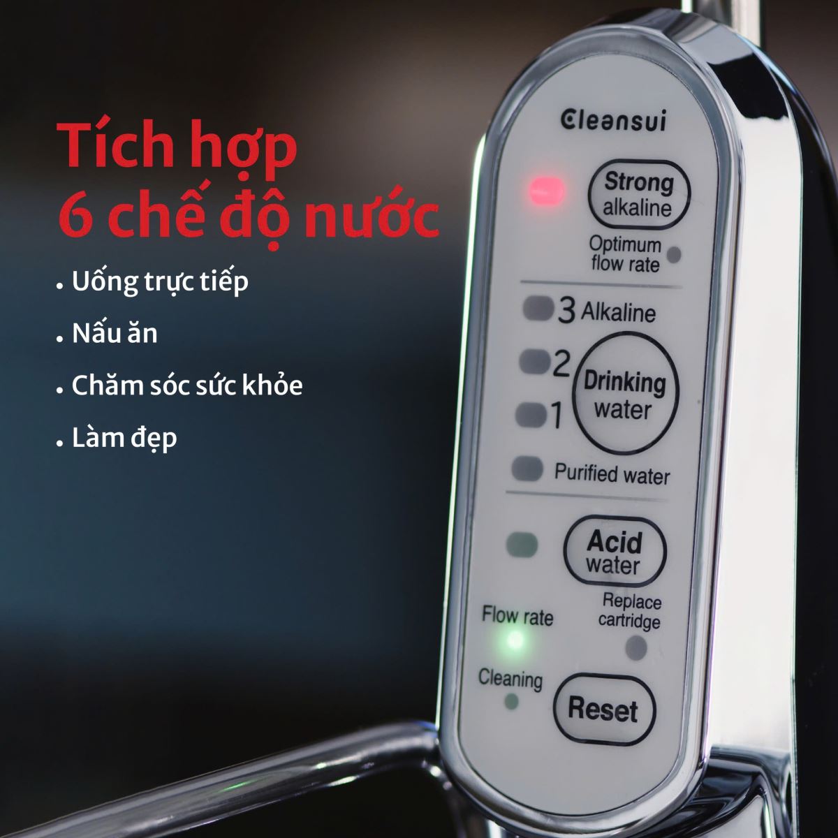 Sản xuất hoàn toàn tại Nhật với tiêu chuẩn chất lượng nghiêm ngặt, Cleansui EU301 nổi bật nhờ khả năng cung cấp 6 chế độ nước đa dạng, đáp ứng đầy đủ nhu cầu sử dụng từ uống trực tiếp, nấu ăn, pha trà, cà phê đến làm đẹp hay rửa thực phẩm.