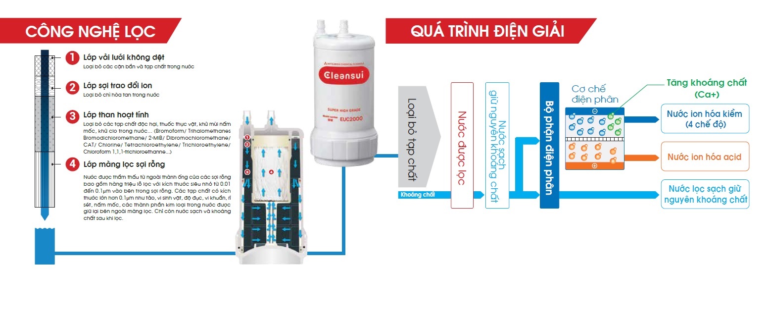 Máy lọc nước ion kiềm Mitsubishi Cleansui EU301 là lựa chọn toàn diện dành cho gia đình hiện đại, kết hợp giữa công nghệ lọc tiên tiến và hệ thống điện phân thông minh.