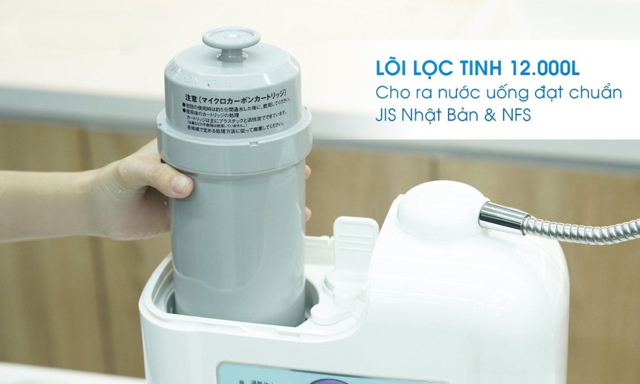 Đây là sản phẩm chính hãng Nhật Bản, được thiết kế đặc biệt để loại bỏ tối đa tạp chất, vi khuẩn và các yếu tố gây ô nhiễm trong nước máy, đồng thời duy trì các khoáng chất thiết yếu, giúp nước ion kiềm tinh khiết, an toàn và giàu năng lượng.