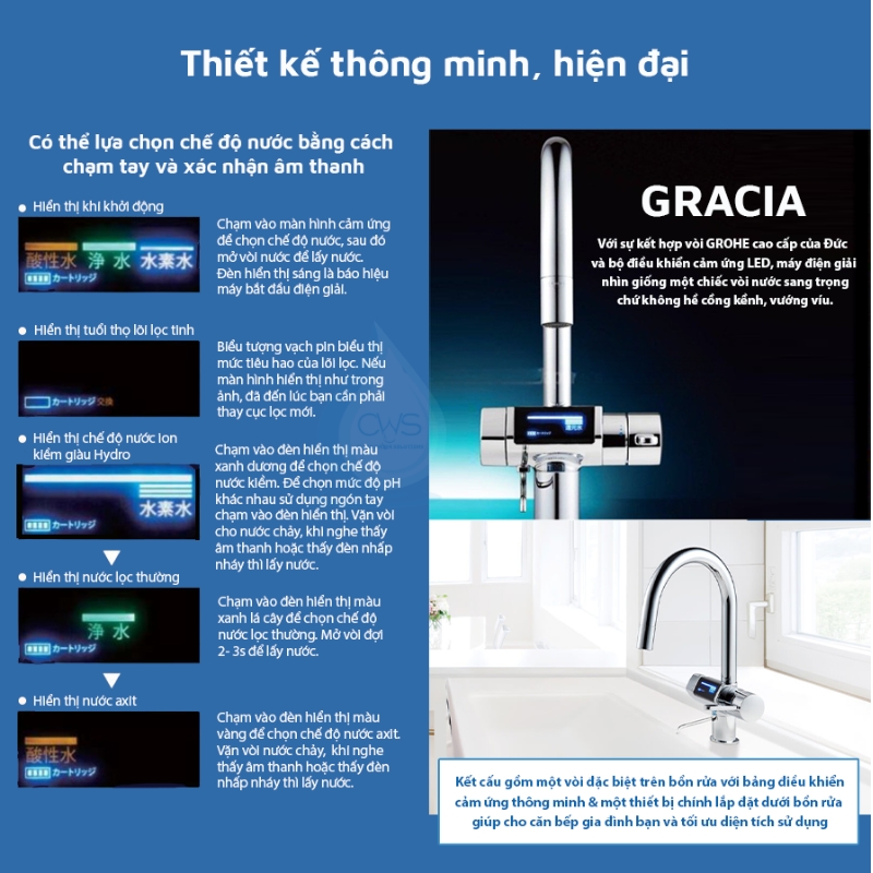 5 chế độ nước máy điện giải Trim Ion Gracia