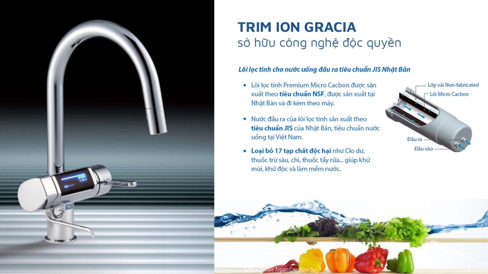 Lõi lọc Trim Ion Gracia sử dụng UMSα Cartridge, được thiết kế với tuổi thọ cao và khả năng lọc tối ưu. Theo khuyến cáo từ nhà sản xuất, lõi lọc nên được thay thế sau khi sử dụng hết 12.000 lít nước hoặc sau 12 tháng, tùy điều kiện nào đến trước.